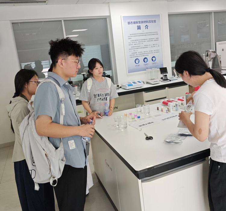 齐鲁理工学院医学院作为区域重要的医学教育与科研基地,拥有深厚的学科积淀与人才培养实力,尤其在健康管理、康复医学等新兴领域积极探索。此次该院派出由骨干教师与学生组成的团队,充分彰显了对固态氢这一新兴健康技术的关注与期待。 在木齐创始人及实验室田主任的陪同下,齐鲁理工学院创新创业科研团队参观了木齐科技的固态氢产品展厅及核心研发实验室。考察过程中,团队成员详细了解了木齐固态氢产品的研发历程、核心原理、生产工艺及质量管控体系。木齐创始人就固态氢技术在药品、食品和中药外用等产品应用方向与团队进行了深入沟通。