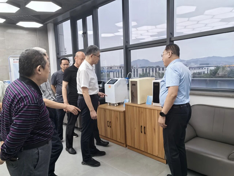 参会人员参观氢能企业展示的小型康养氢能设备,直观感受制氢设备、健康产品等落地成果,为本次交流画上圆满句号。