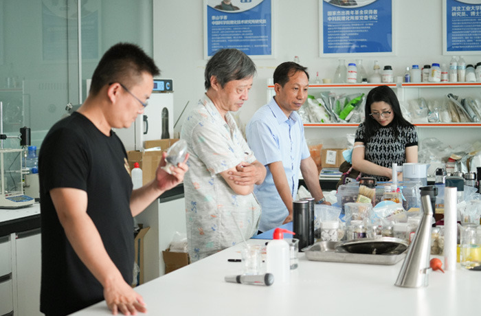 在木齐会客厅,何前军教授、唐为研究员、杜元伟老师详细听取了王家胜的介绍,深入了解了木齐科技在固态氢方面的发展定位与产品研发。在固态储制氢新材料实验室,何教授等专家详细了解了氢中药系列产品的研发背景和产品特点,对于木齐开发的氢中药系列产品给予充分赞赏,并对木齐科技在氢健康行业的创新精神给予肯定。