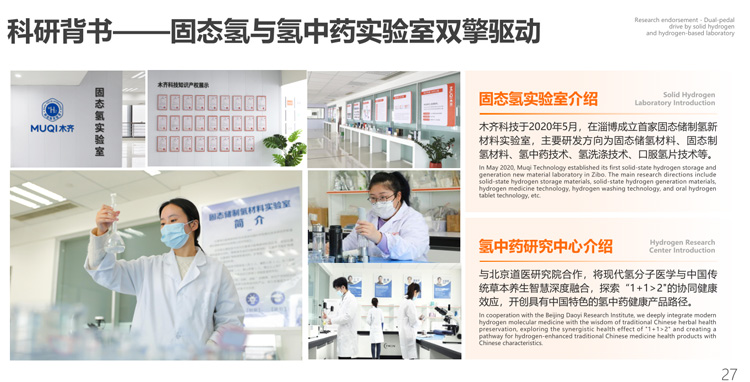 第三章木齐科技的战略定位:做产业的“氢+”赋能者 3.1 七年深耕,构筑技术护城河 木齐科技自2015年成功研发富氢水瓷材料起步,2019年建成国内首家固态储制氢新材料实验室,2021年建成氢产品创新中心。截至目前,已获得37项国家授权专利,备案多项企业标准,构建起以镁基、硅基、钙基材料为核心的固态氢技术体系。 3.2 清晰的商业模式:不做品牌,做“水手” 木齐科技CEO陈滨在36氪专访中明确指出公司的战略定位:“固态氢核心材料供应商”与“氢健康生活方案定义者”。这一模式的核心在于: 不生产独立的氢设备,而是专注于将固态氢缓释材料作为功能性添加剂,与现有成熟消费品载体深度融合。 秉持“合作大于竞争”理念,以投行思维链接相关行业,为合作伙伴提供一站式产品+技术+供应链服务。 将自己定位为“卖水者”,赋能传统企业实现产品升级,而非与下游客户争利。 这种轻资产的平台化模式,使木齐科技能够借助现有巨头的渠道和品牌力,实现快速放量,同时避免陷入同质化的品牌混战。